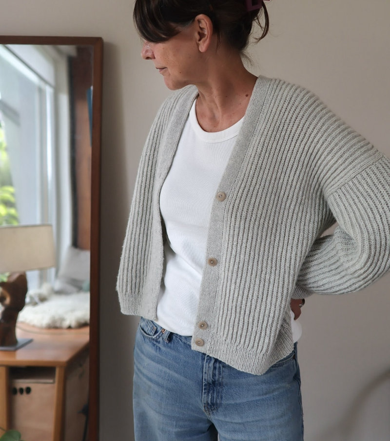 Кардиган COOMO вяжется без швов сверху вниз. Вязание начинается со спинки до подреза проймы. Затем поднимаются петли для полочек, которые вяжутся симметрично до подреза проймы. Затем соединяются спинка и полочки, чтобы вязать тело одной деталью до нижнего края резинки. Затем поднимаются петли для вязания рукавов поворотными рядами.