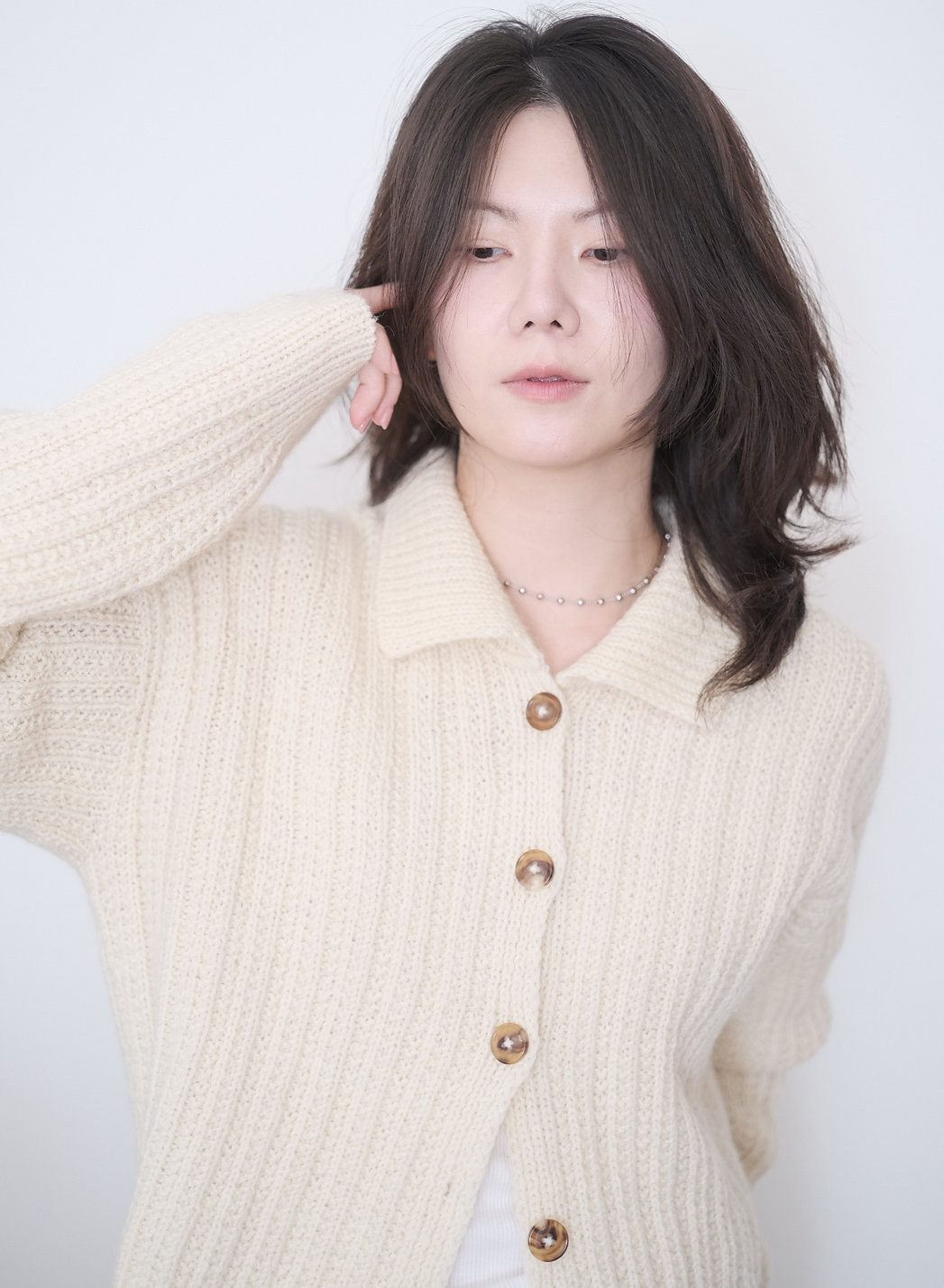 That Collar Cardigan – продолжение серии That Cardigan, который был с вырезом «лодочка». Он отличается спущенным плечом и свободным силуэтом оверсайз. Чем свободнее вы его будете носить, тем стильнее он будет выглядеть. Образец на фото связан с припуском около 25 см к обхвату груди.