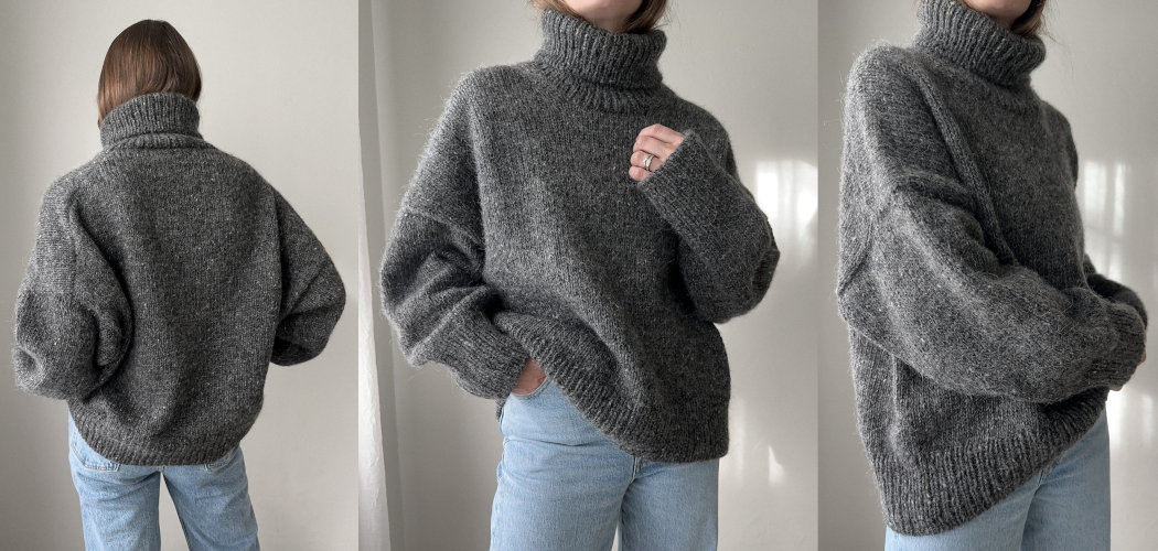 Пуловер связан сверху вниз и имеет свободный фасон оверсайз. Он оснащен отложным воротником-стойкой для максимального тепла, что особенно важно в самые холодные дни. Это любимая и классическая вещь для многослойного образа в зимнем гардеробе.