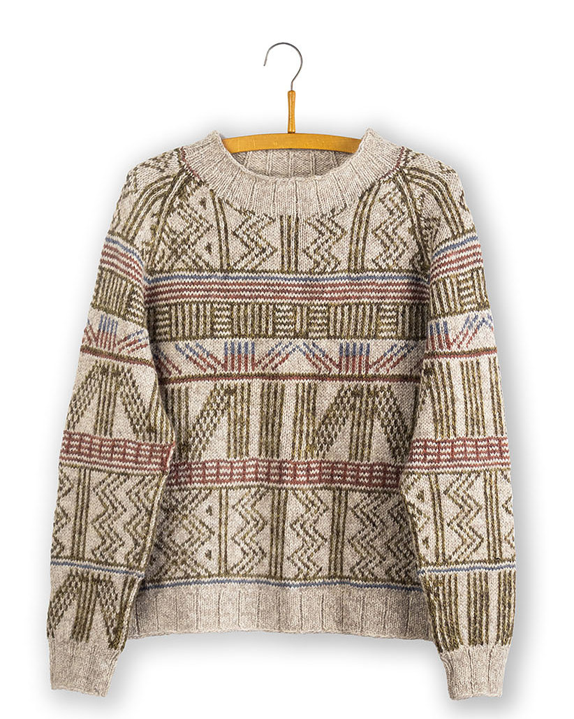 Isager Jensen по 50 г пряжи следующих цветов: 6s, 7s, 8s, 87, 93, 98 для узора.